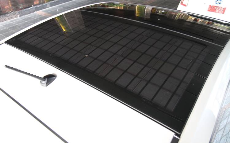 แผงโซลาร์บนหลังคารถแบบมูนรูฟ ซึ่งจะรับพลังงานแสงอาทิตย์มาเป็นพลังงานไฟฟ้า เพื่อใช้ในการทำงานของพัดลมระบายความร้อนออกจาก